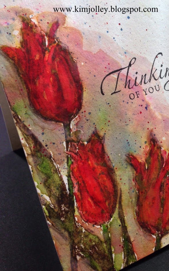 Another attempt at lesson 5 from online watercolor card class: Postmark Tulip
